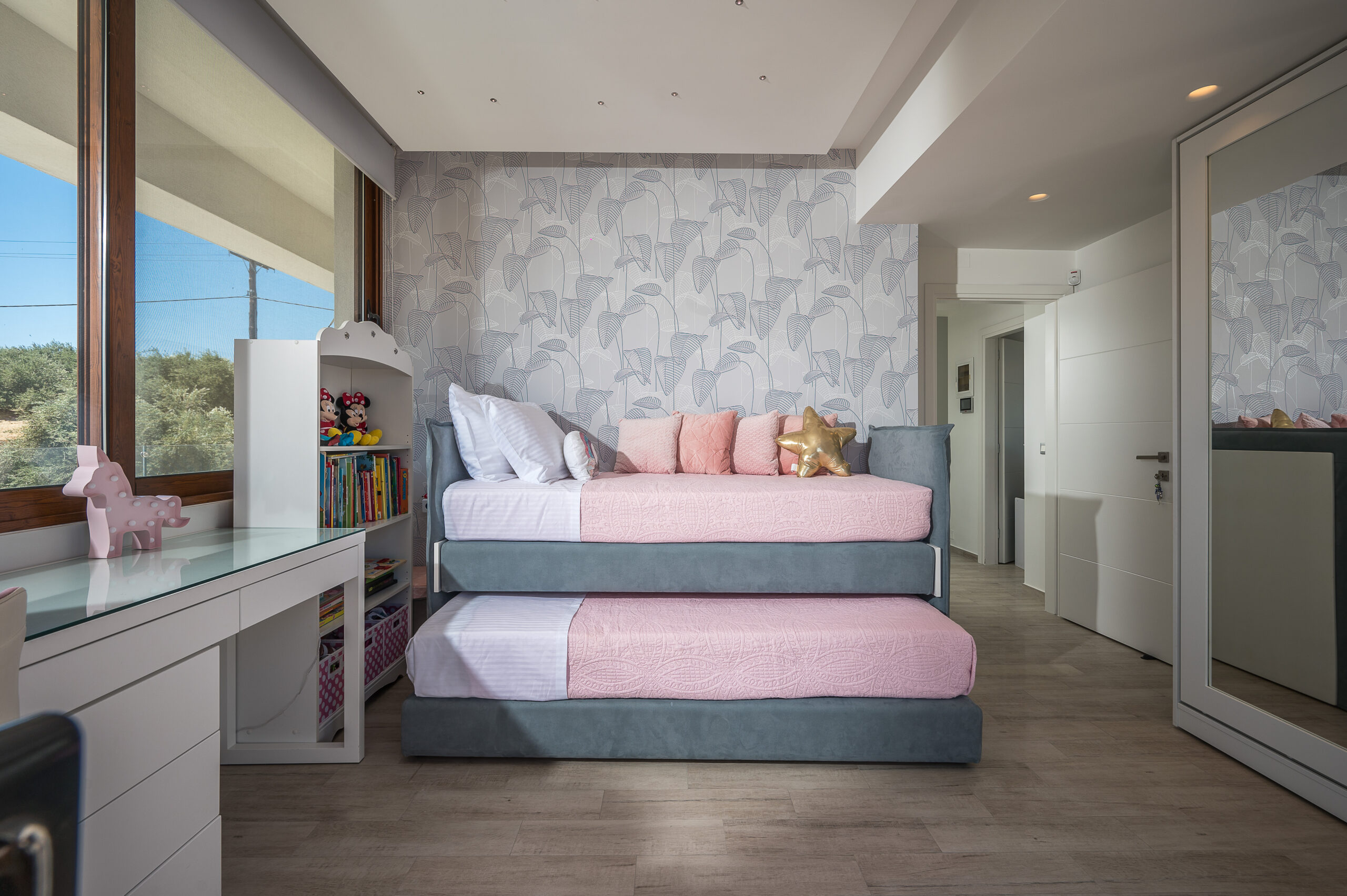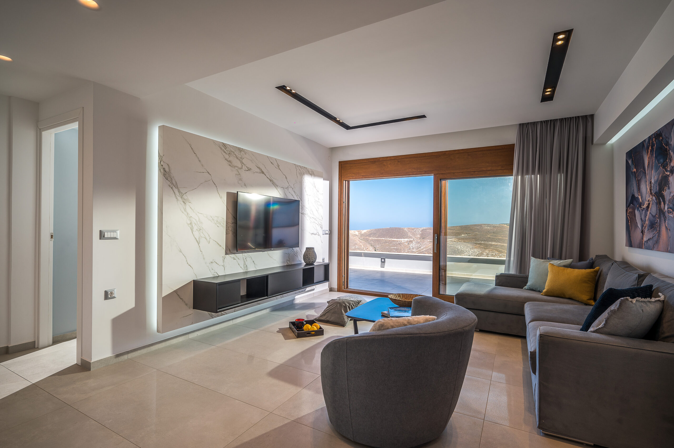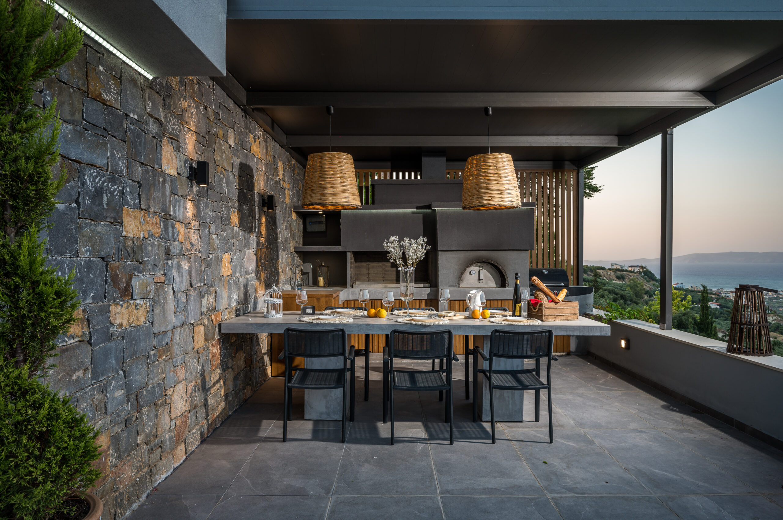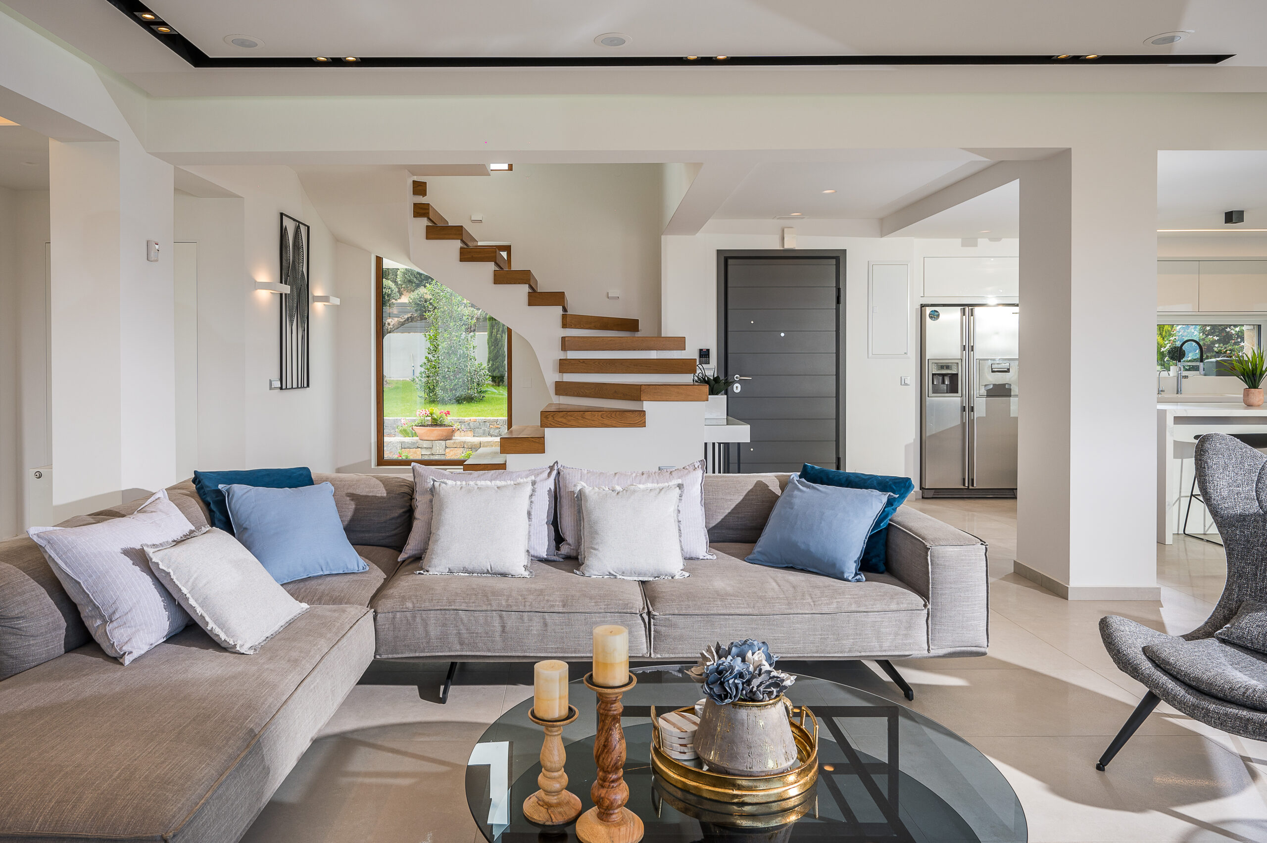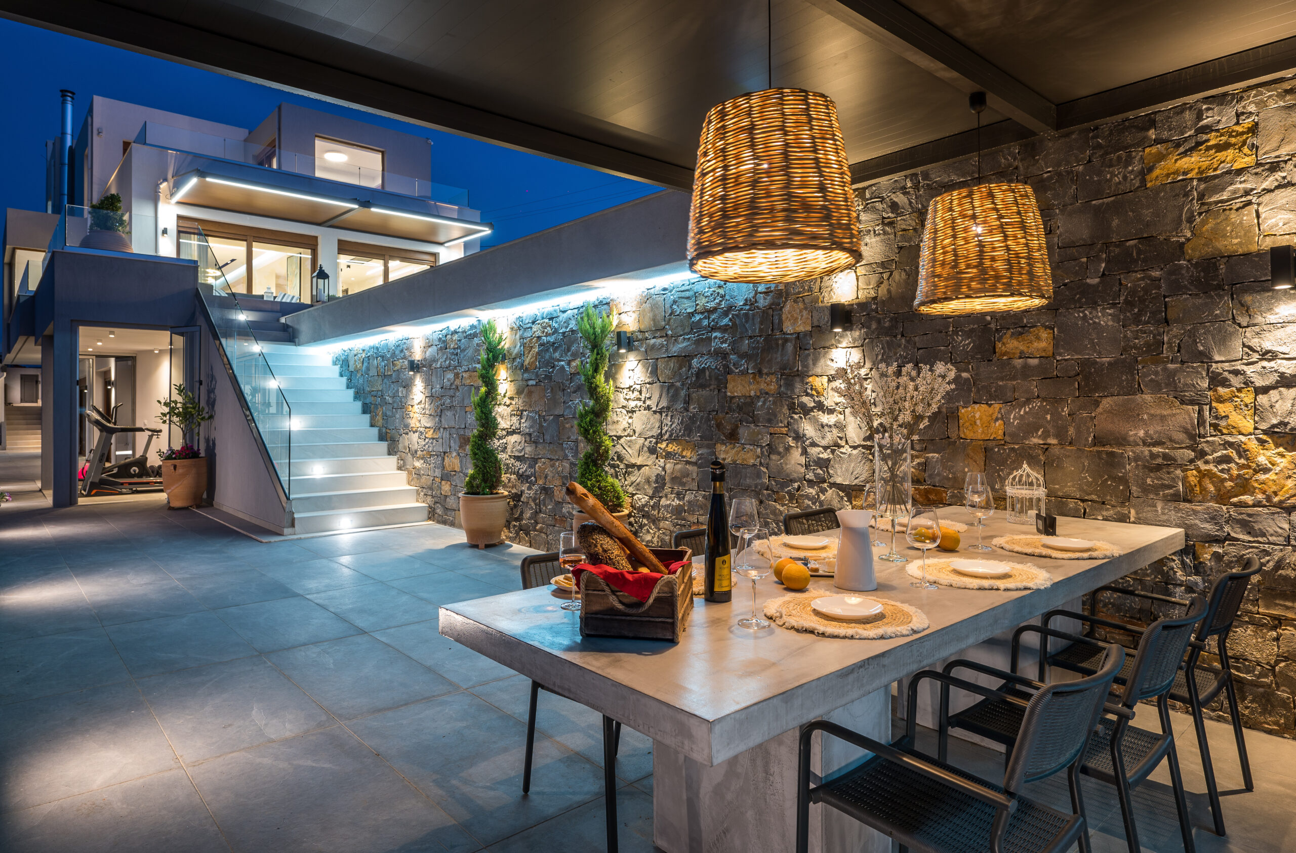 The unique multilevel outdoor space with stone elements is ideal for pampering your body and soul while enjoying the breathtaking views of the Dia island. Relax by the truly stunning lush gardens, with lawn, tall cypress and citrus trees, scented flowers and herbs that perfectly complement the spacious interiors of the villa.