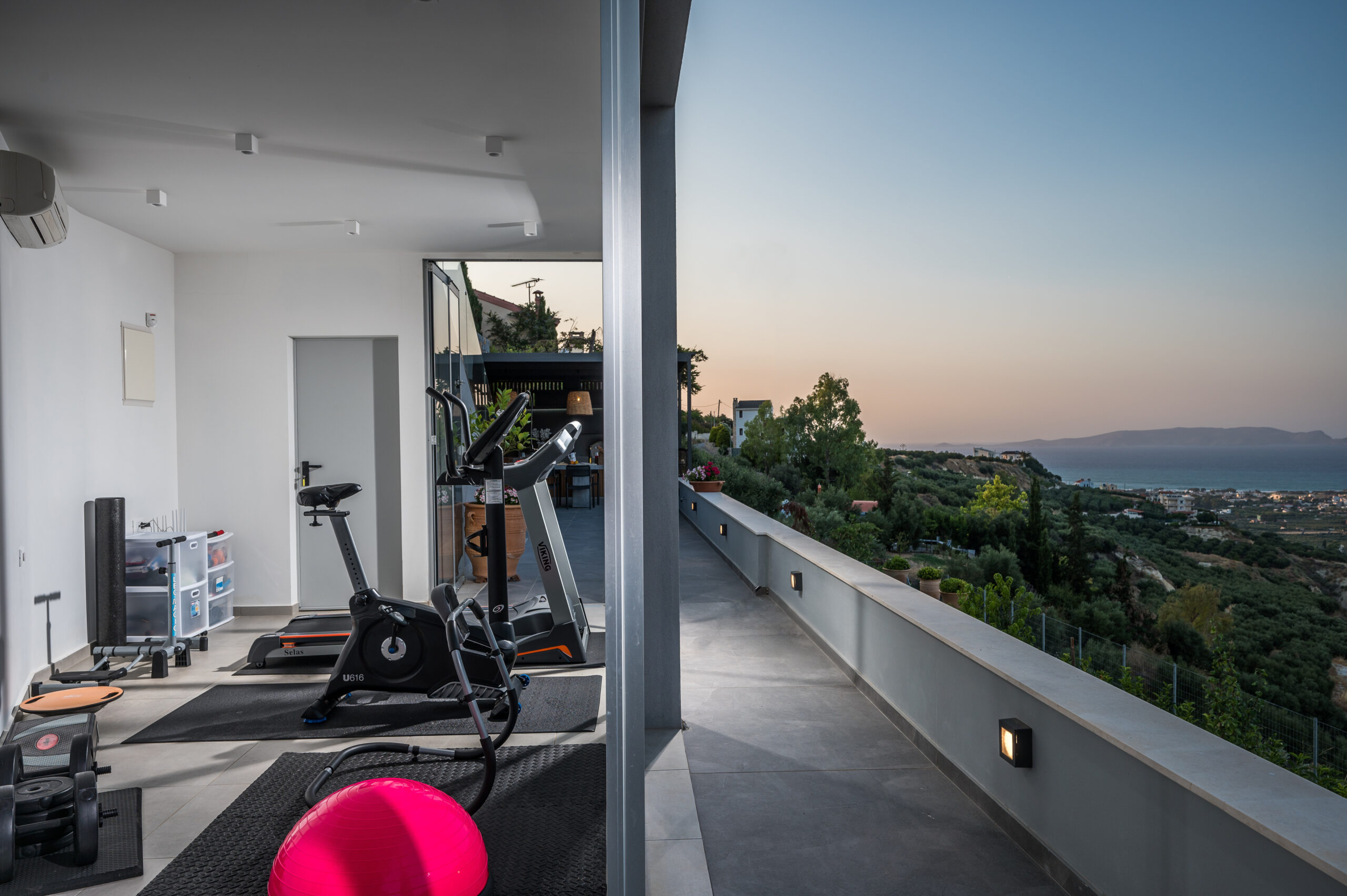 The villa has a brand new gym where you can combine the fabulous views of the olive groves beneath the villa, the surrounding hills, the sea, and the island of Dia, with your Pilates, yoga, or other favorite exercise. The gym is equipped with: